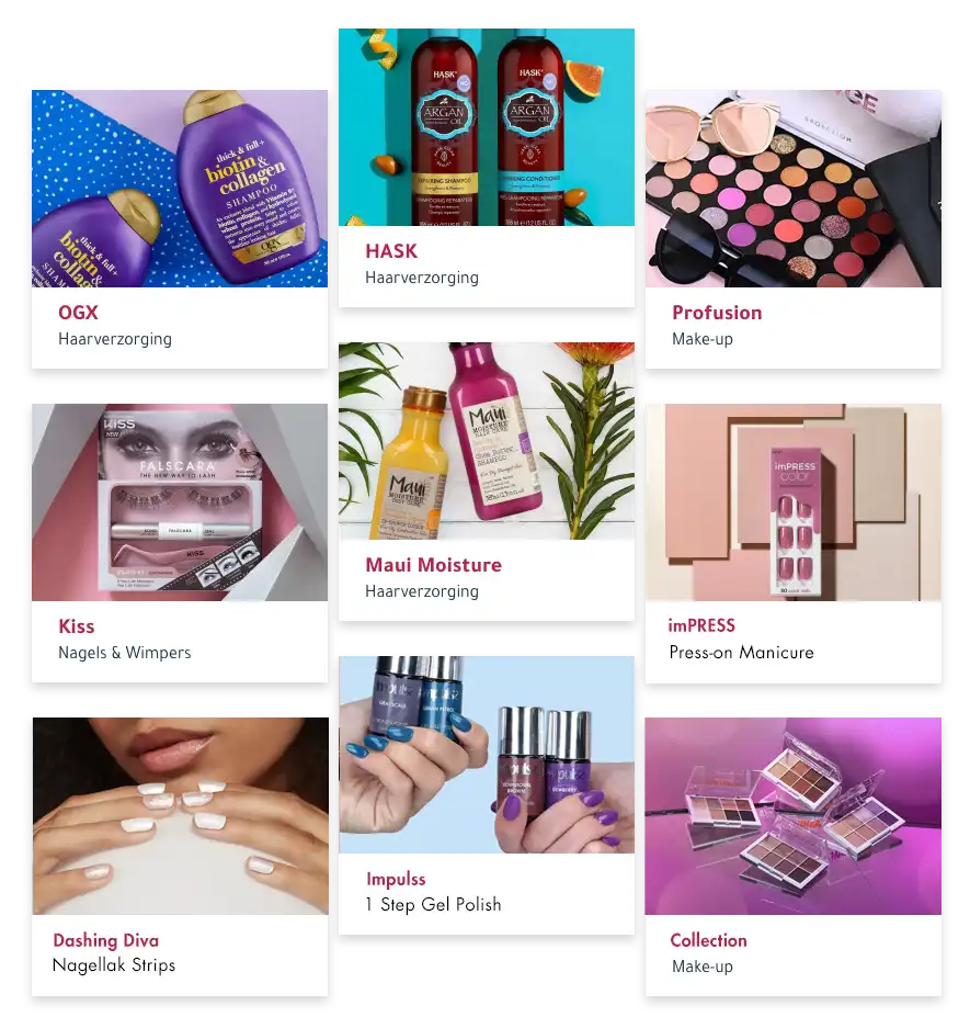Wij zijn altijd op zoek naar de mooiste en beste merken van over de hele wereld. Bij ons vind je altijd trendy en betaalbare cosmeticaproducten uit onder andere New York en Londen. Al meer dan 25 jaar staan wij garant voor de mooiste producten.